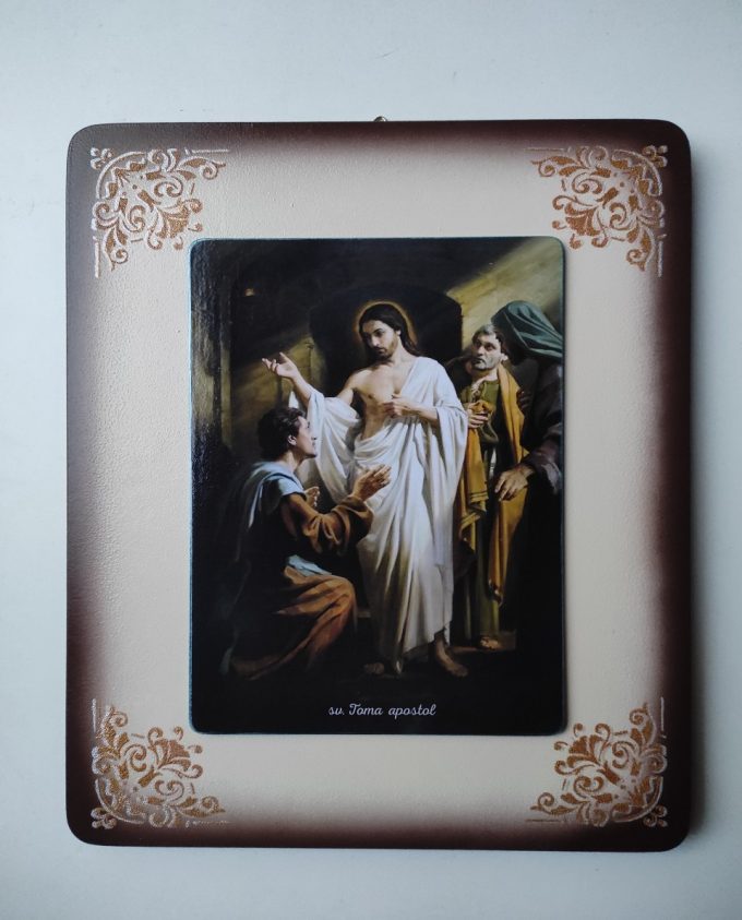 Materijal medijapan, akrilne boje, slika printana na papiru, lakirano bezbojnim lakom na bazi vode, dimenzije 50 x 40.